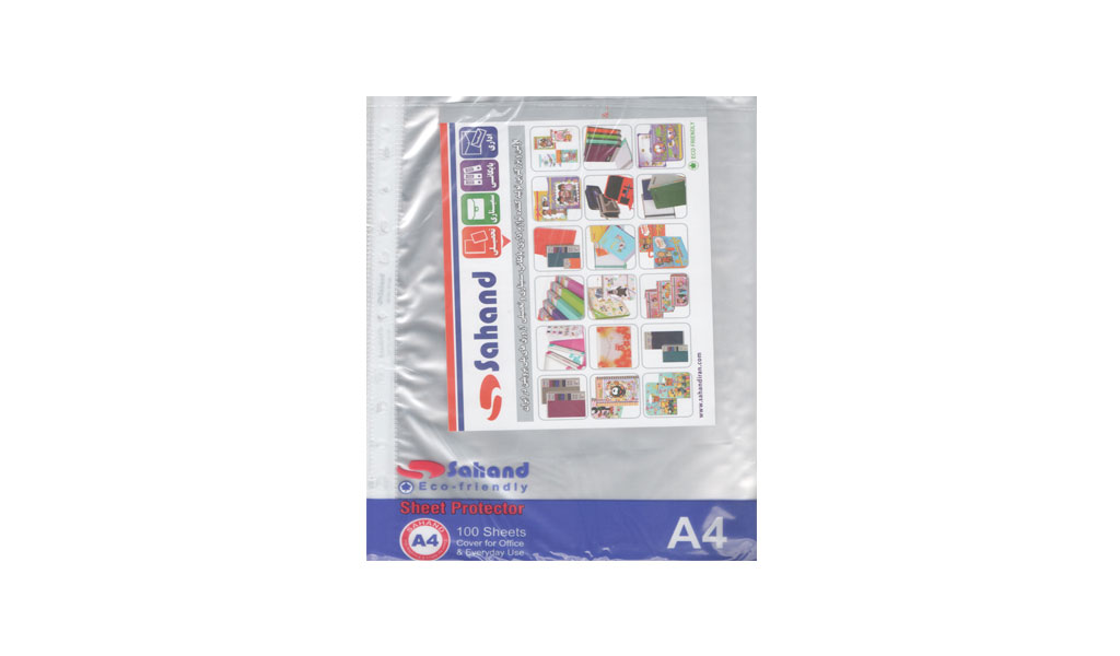 کاور پلاستیکی سایز A4 سهند ضخامت عالی مناسب برای نگهداری کاغذ های پرینت شده سایز 210*297 میلیمتر تعداد در هر بسته 100 عدد برای مصارف اداری و نگهداری اوراق